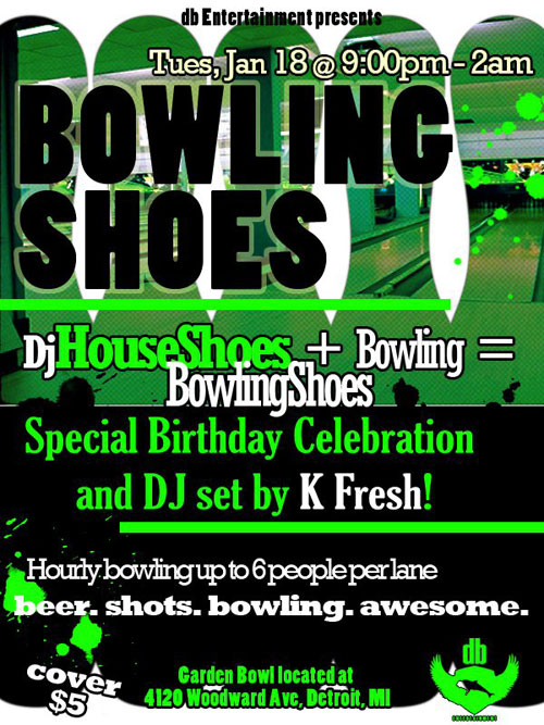1/18 – Bowling Shoes w/DJ House Shoes & DJ K-Fresh @ Garden Bowl (Detroit)